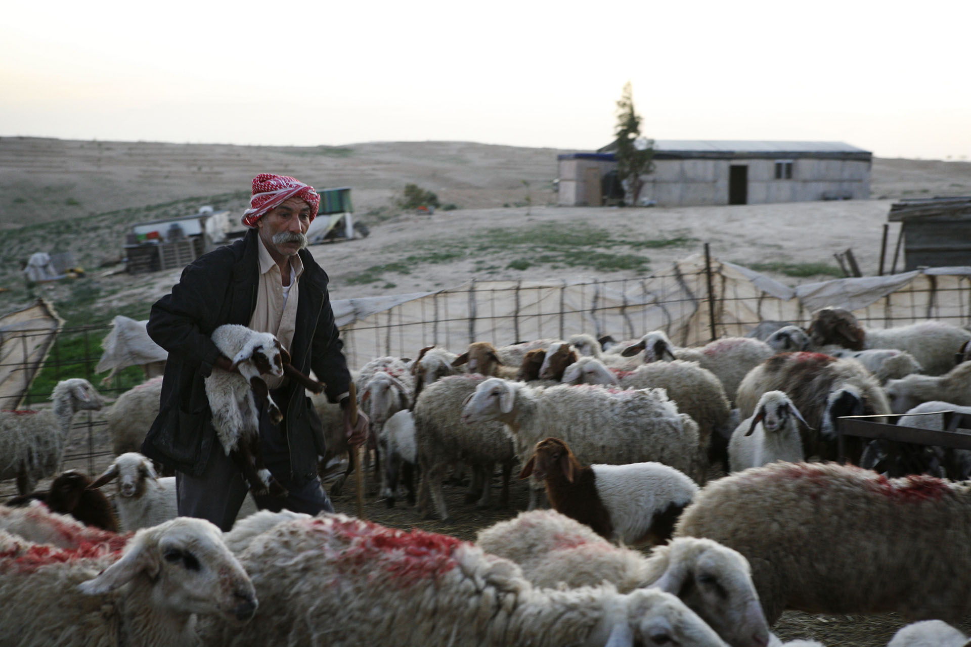 Sheikh Sayah, head of the village of Al Araqib tends to his sheep. Al Araqib, February 2010