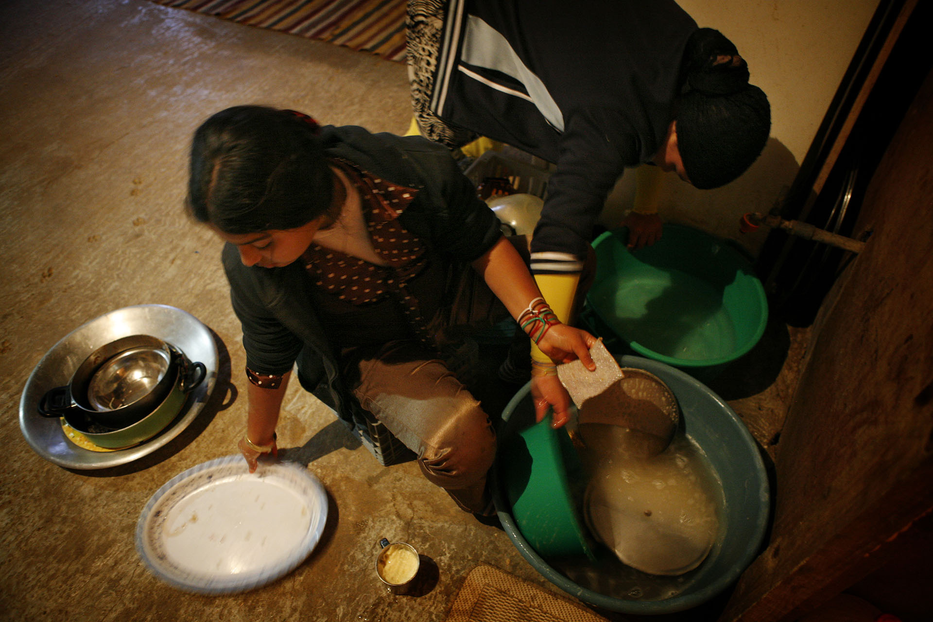 Fatima washes dishes after dinner. Al Araqib, February 2010