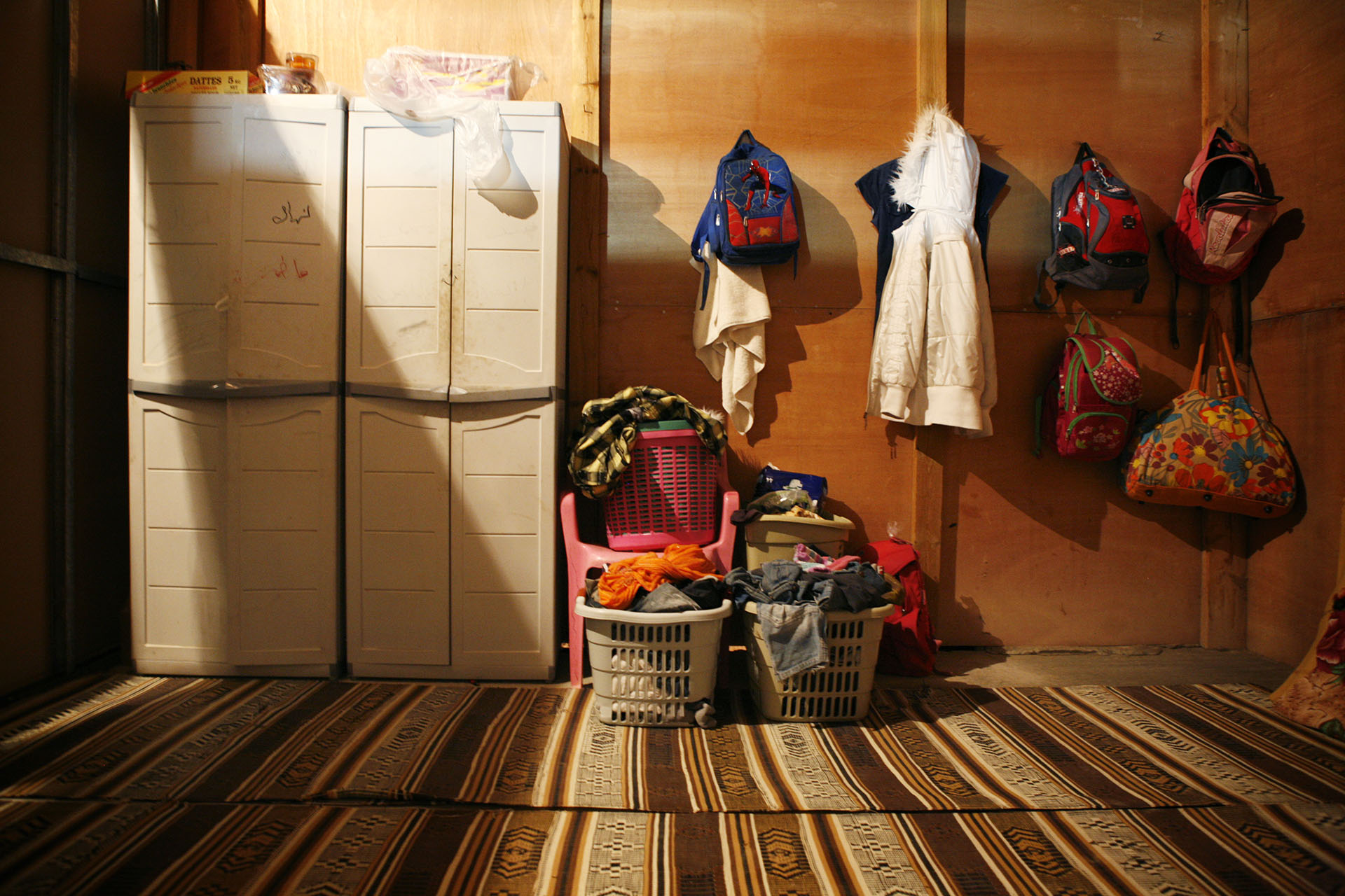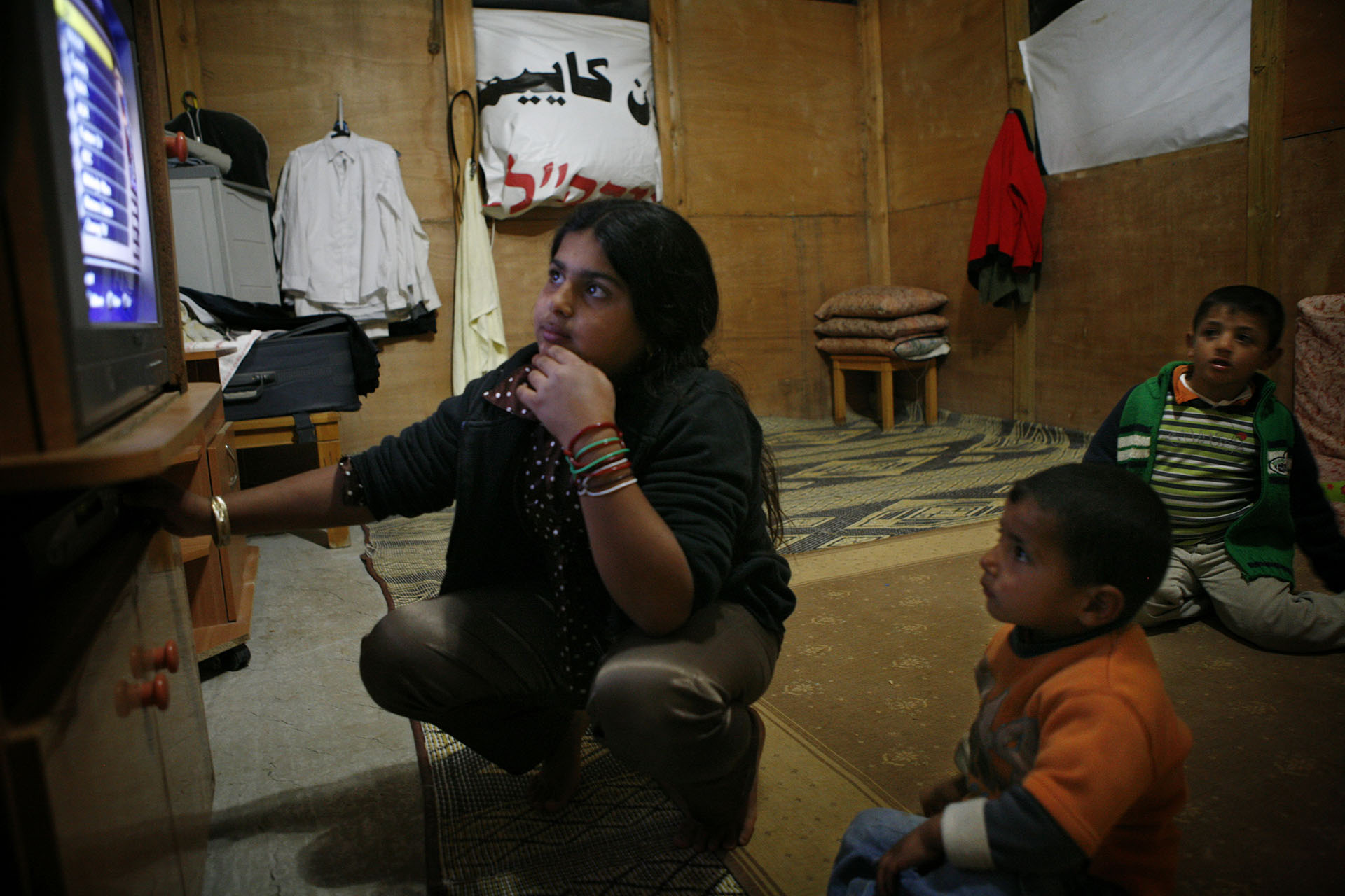 Said stands by the door as Hala, Fatima and Mohammed are in bed in their room. February 2010