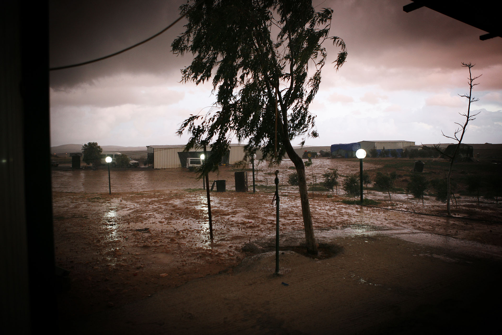 Al Araqib during a storm. Lamps powered by solar energy mark the paths leading to different homes. February 2010
