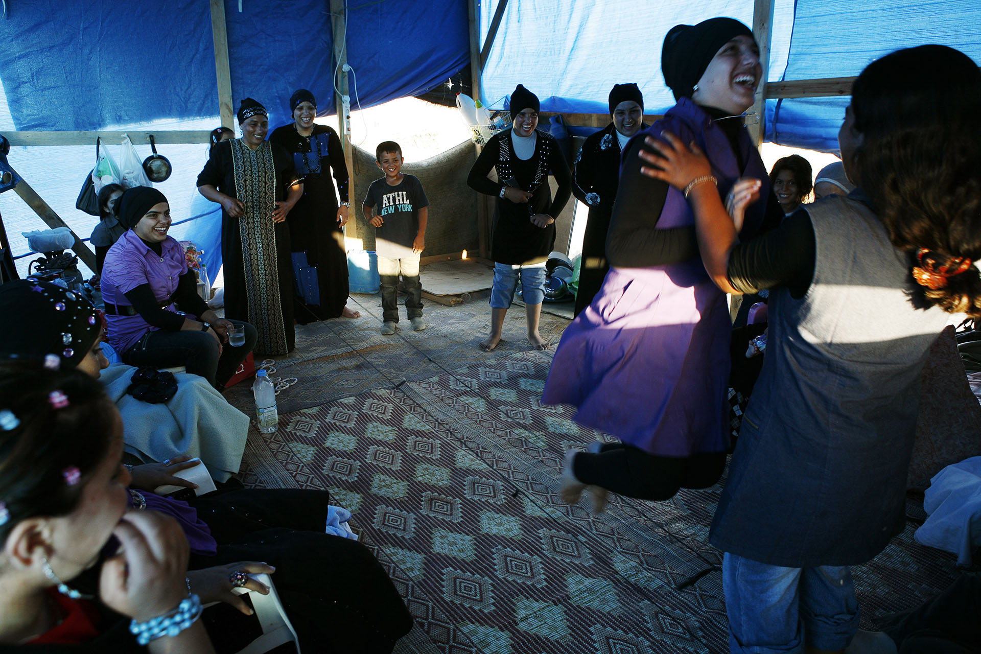 Fatima Abu Madegham Al Turi dances in her home. Al Araqib, February 2010