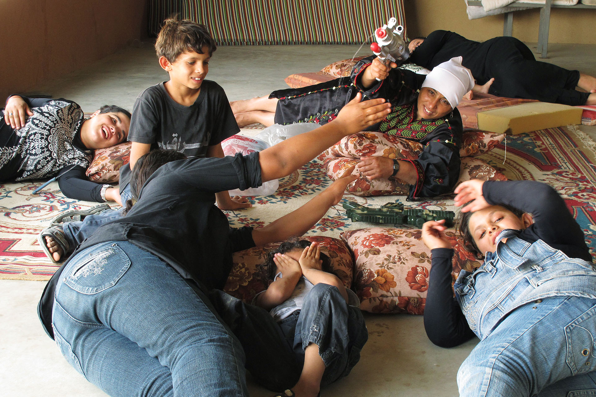 Extended family plays in the common area in Fatima's family home. Al Araqib July 2011