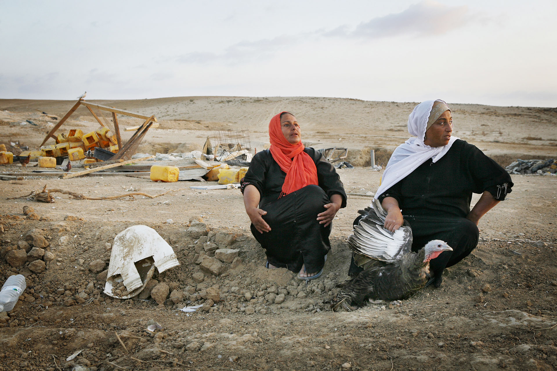 Women sit in the village after the umpteenth demolition. Al Araqib, September 2010