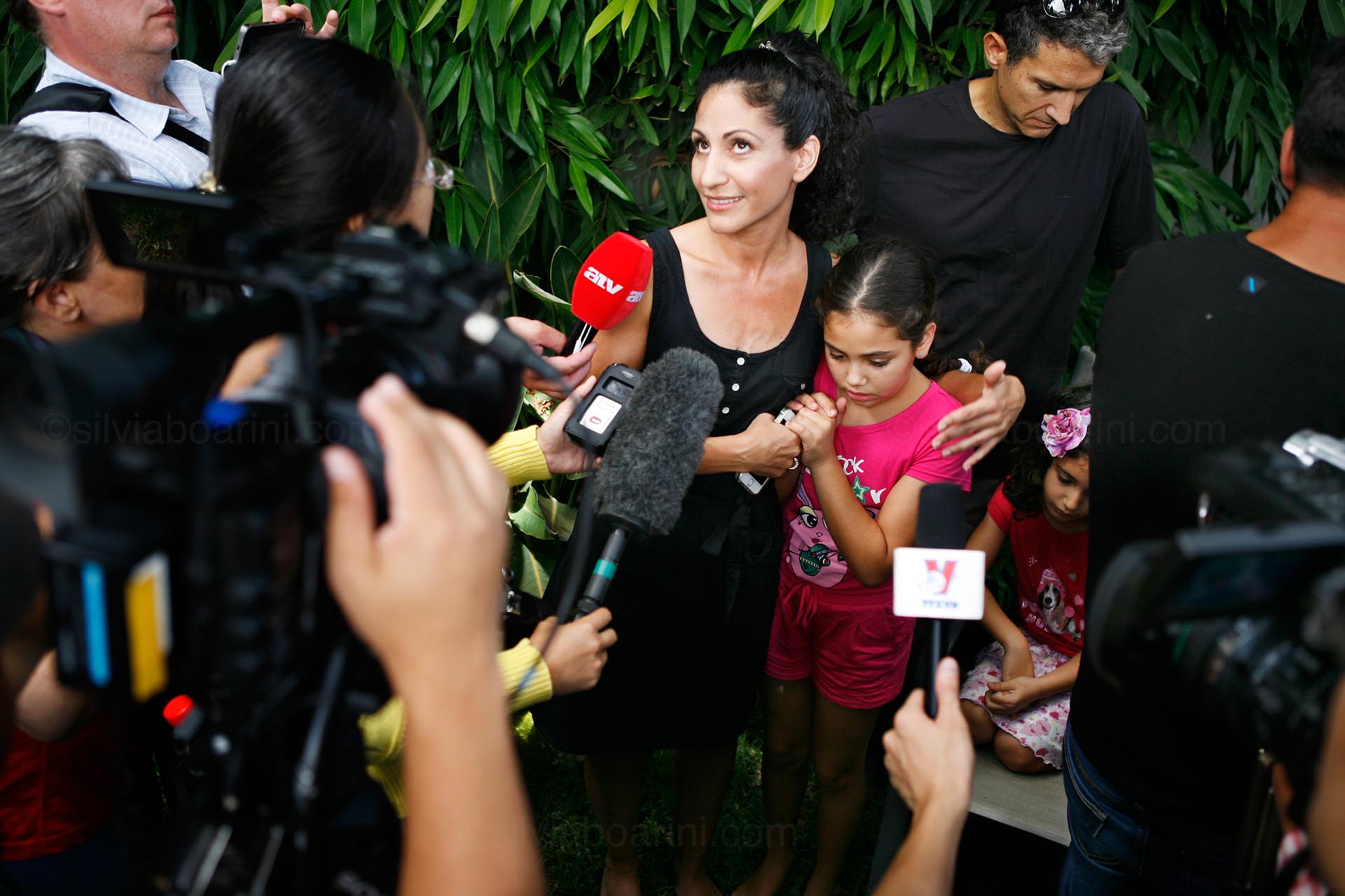 A meeting with an Israeli family in Ashkelon is organized for the press. The Lau answered questions about daily life during Operation Protective Edge, as Israel named the Gaza war of 2014. Ashkelon, Israel July 2014