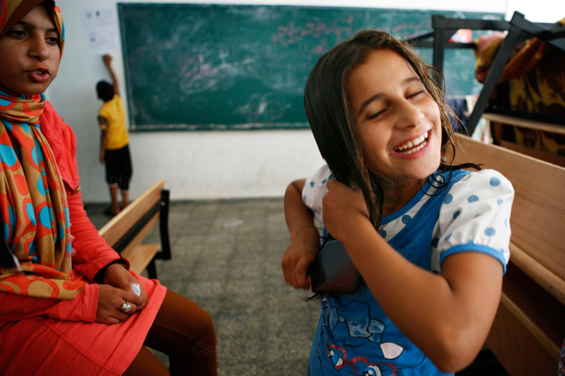 Looking for safety, children displaced from the northern city of Beit Hanoun, moved with their families to UNRWA schools in Gaza city. Gaza, July 2014