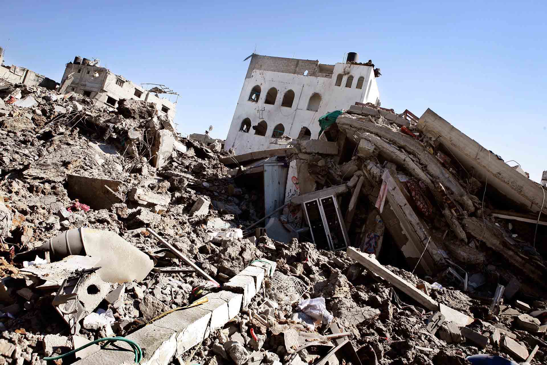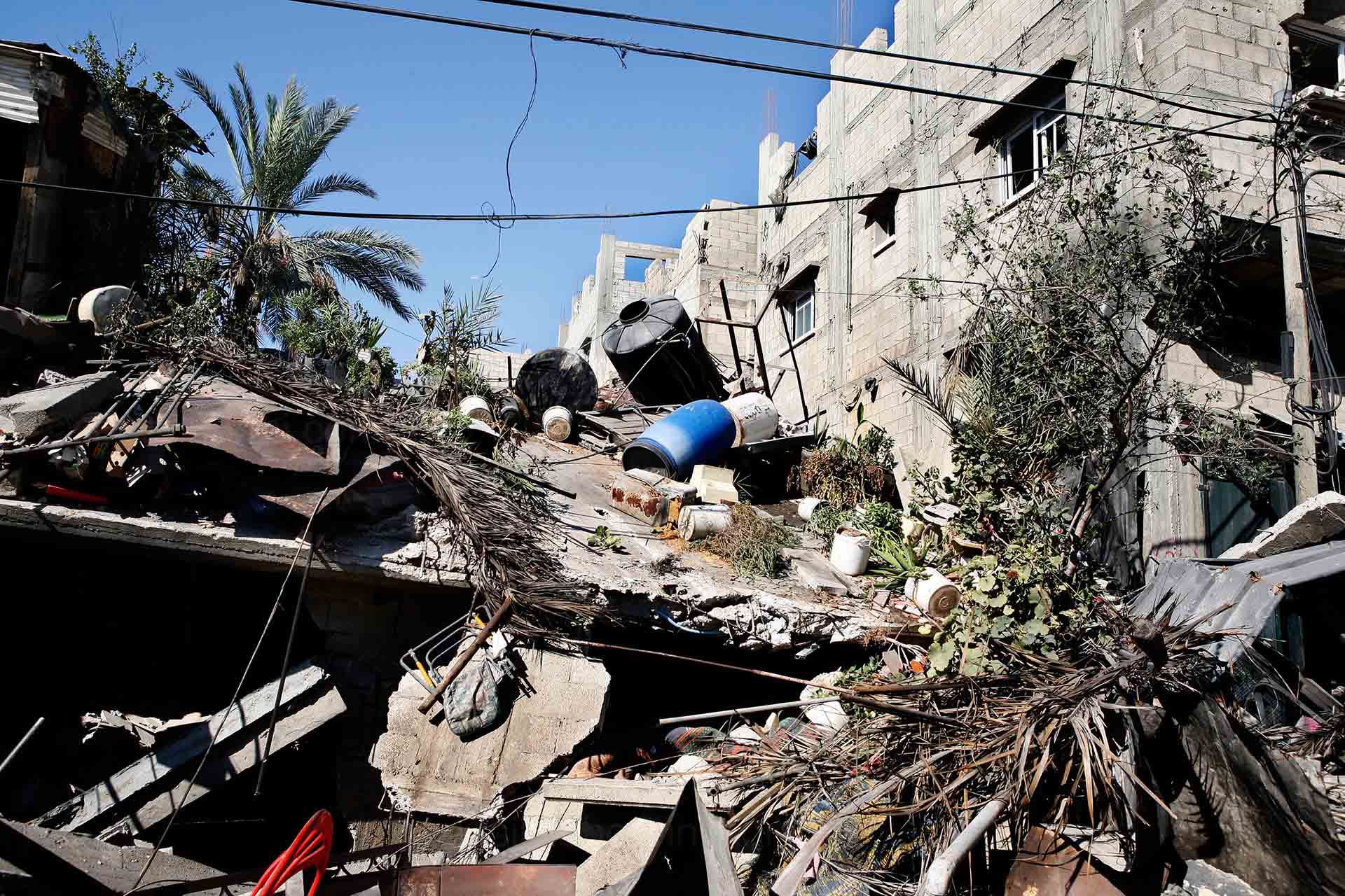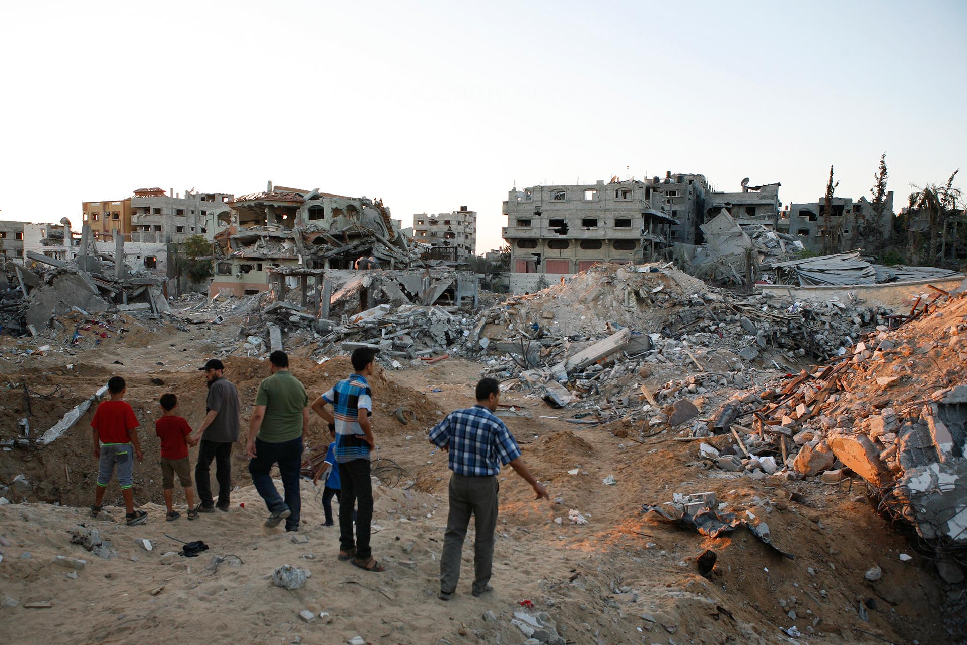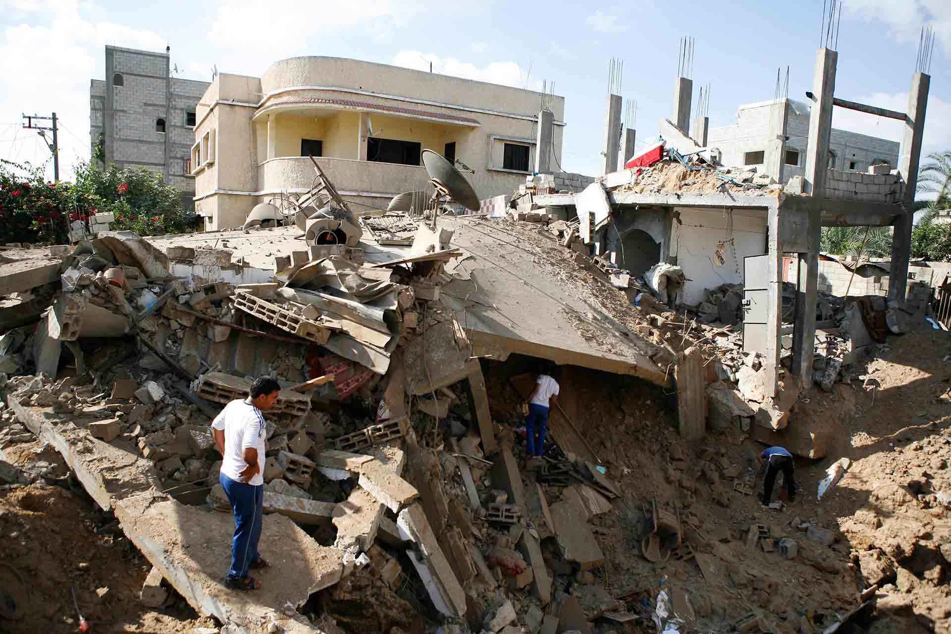 Families recover some of their belongings from the rubble of their homes. July 2014