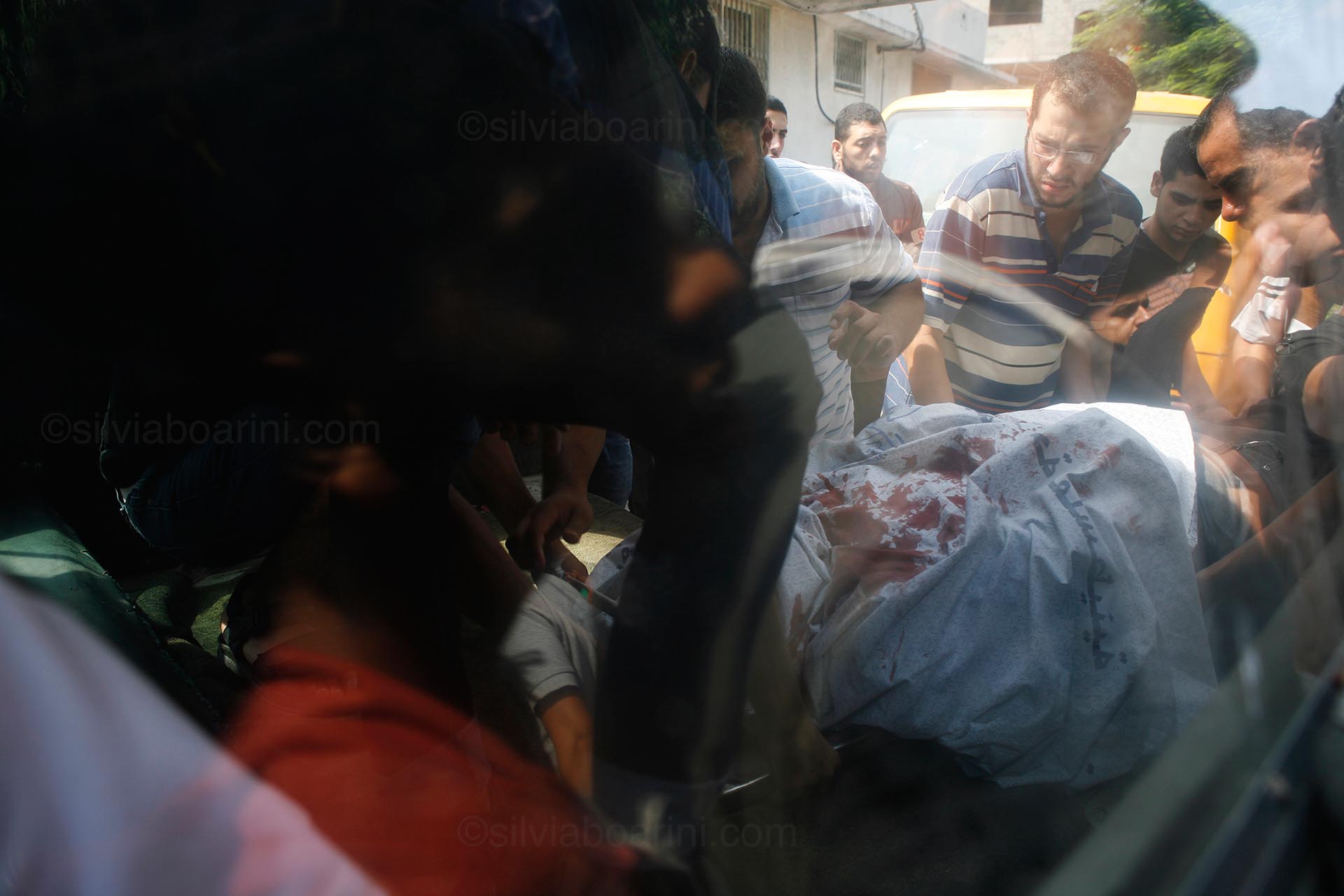 Outside the Shifa morgue, Gaza, 20 July 2014.