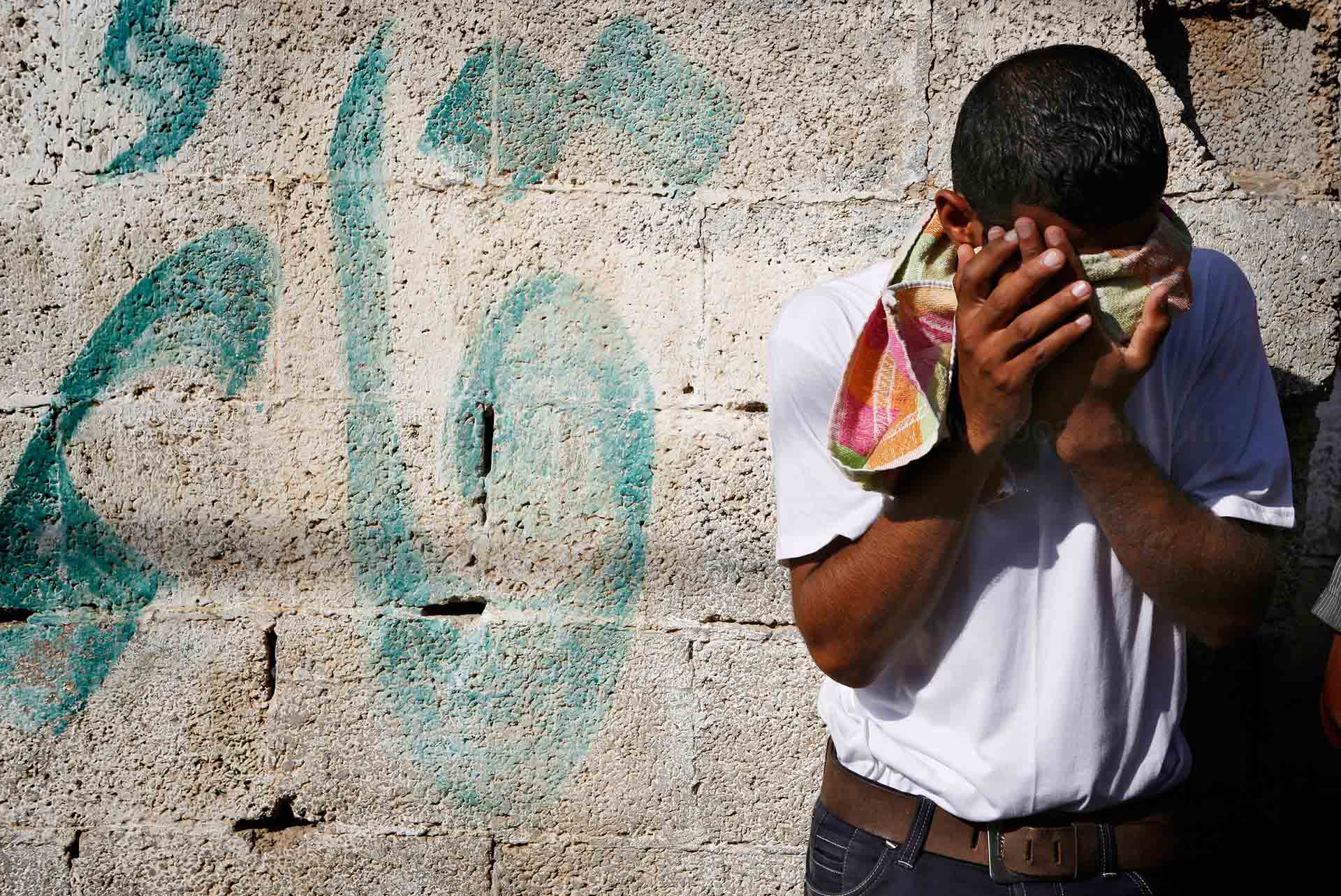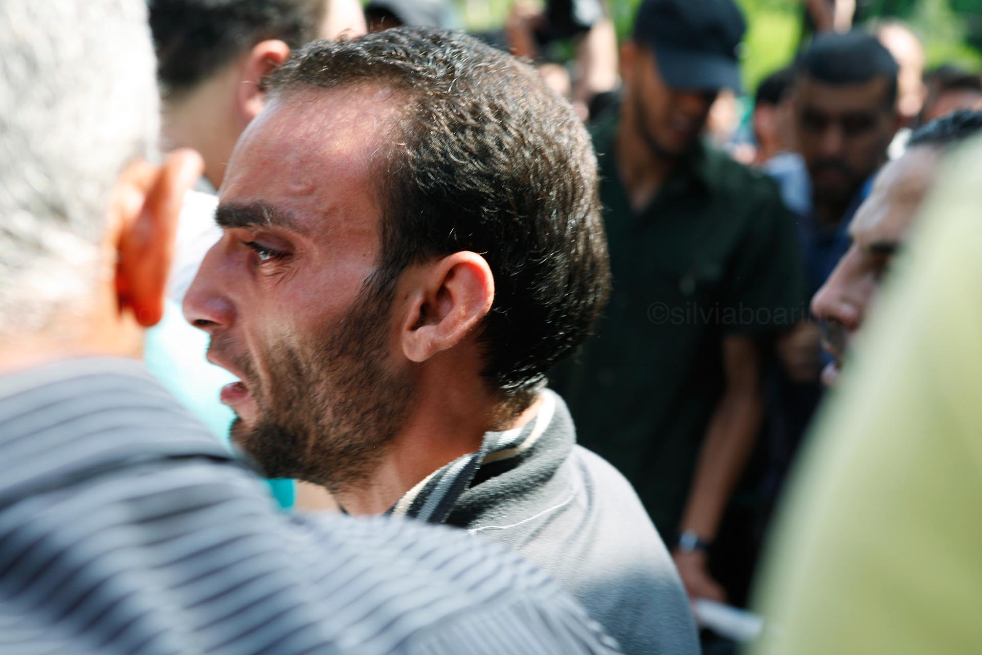 In Abasan Al Kabira relatives mourn 32 year old Ibrahim Abukther whose dismembered body was found in the rubble of his home. Abasan Al Kabira, 26 July 2014