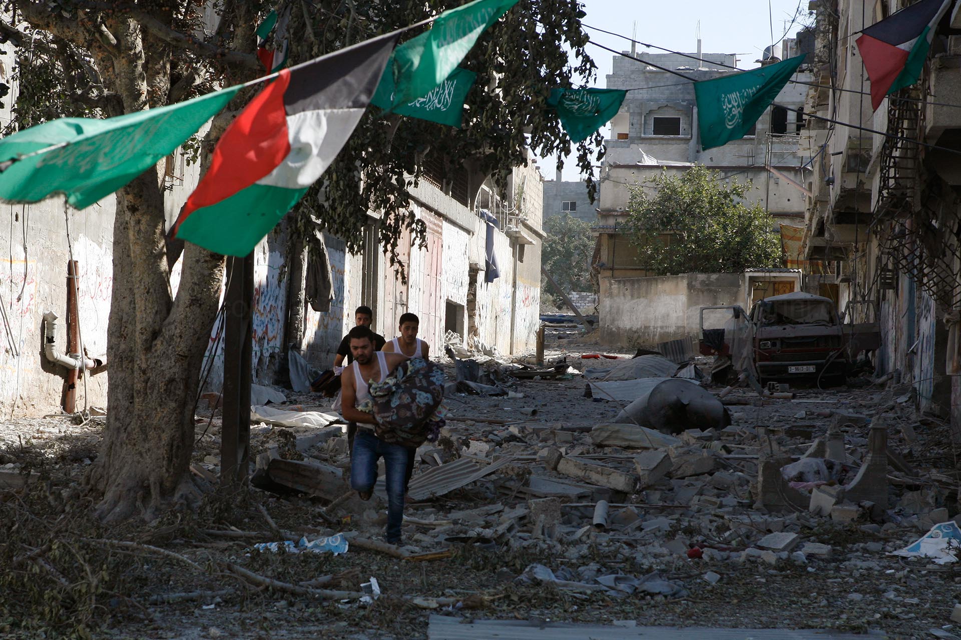 Shujayea, people recover belongings from the rubble of their homes. August 2014