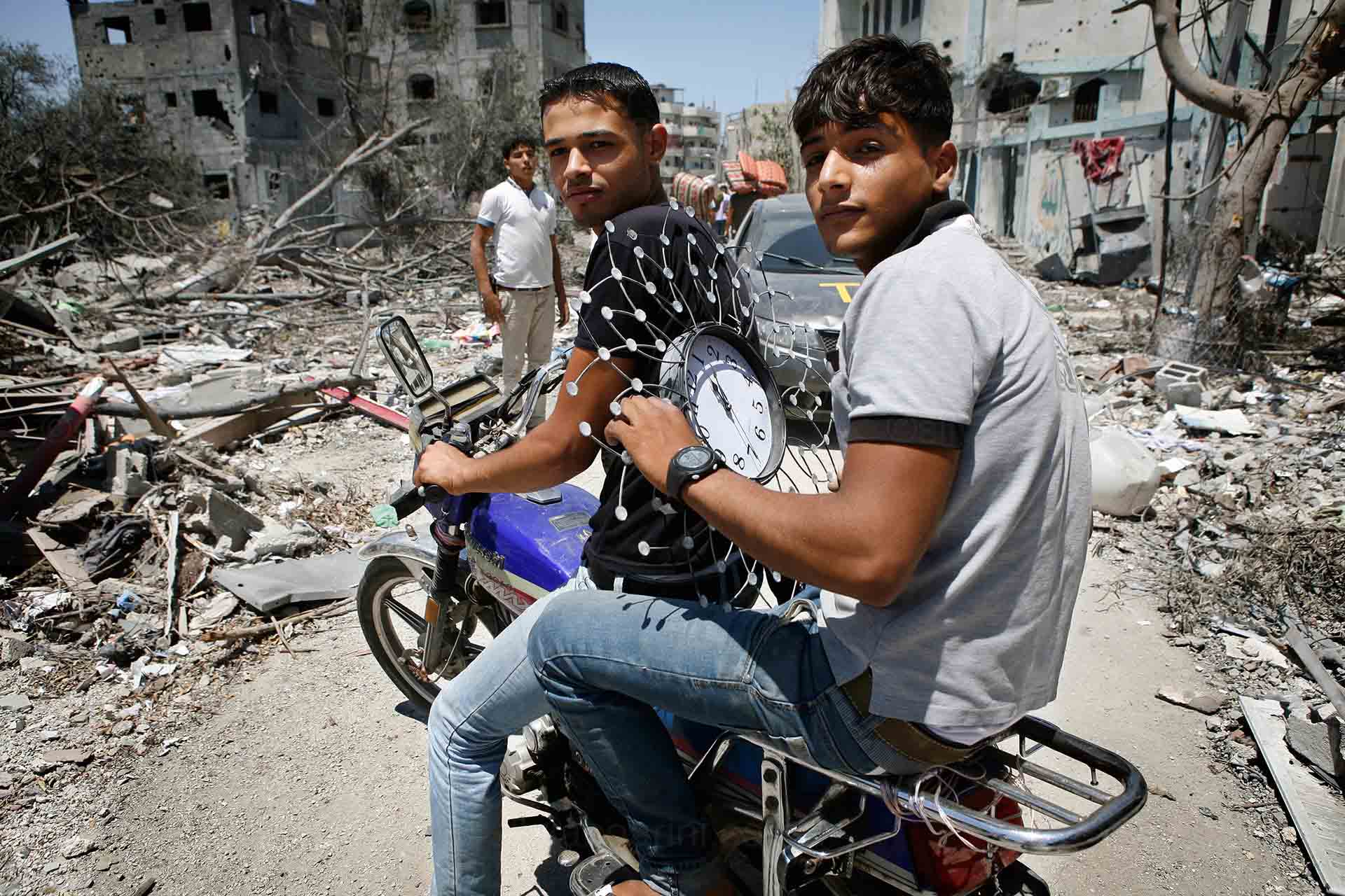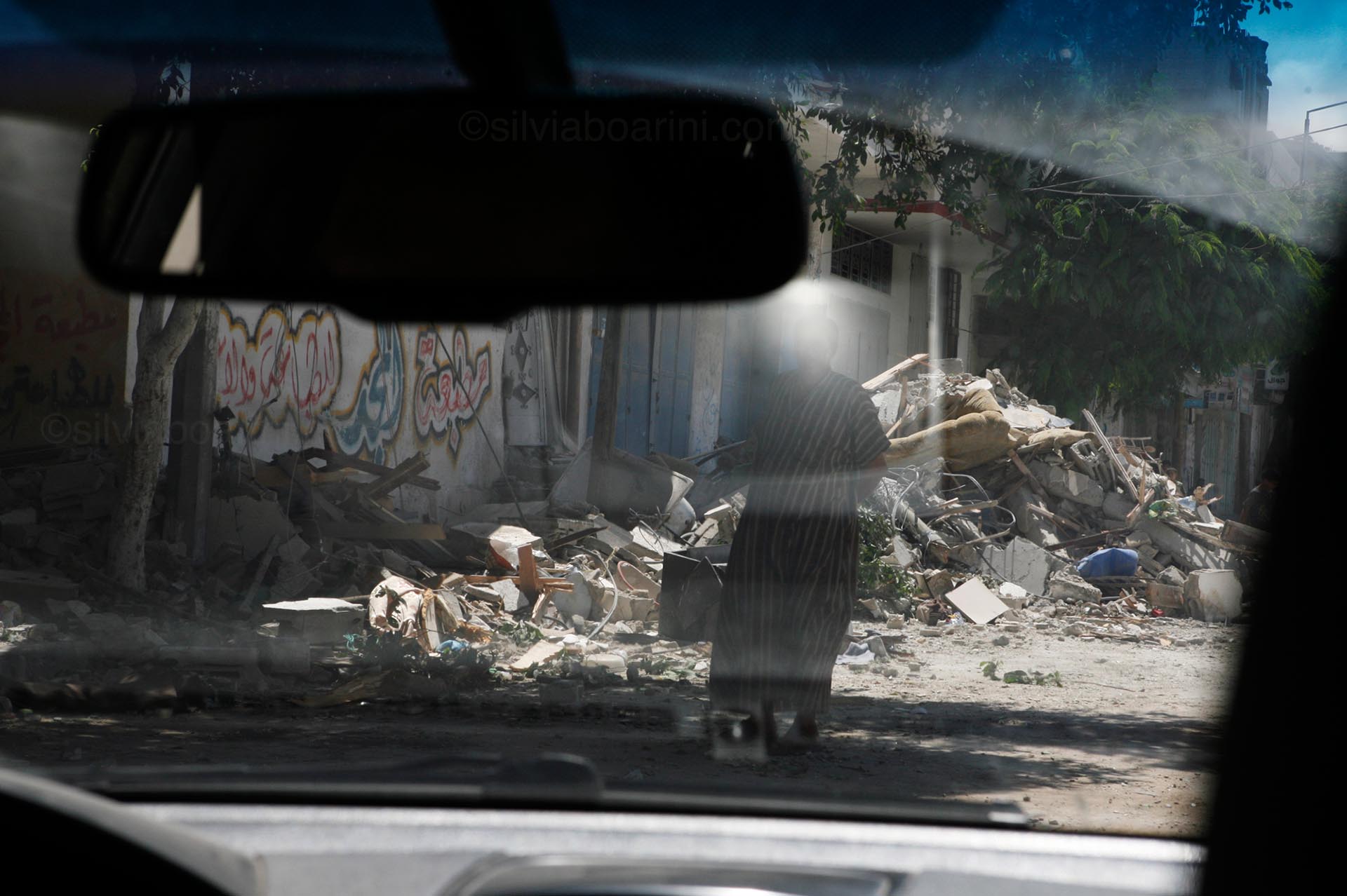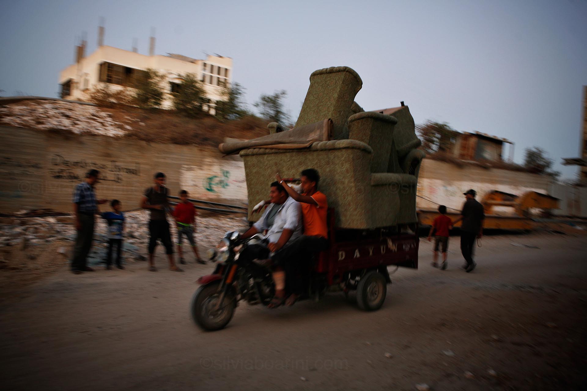 On a day of ceasefire, families travelled to their homes to recover belongings from the rubble. Shujayea, July 2014