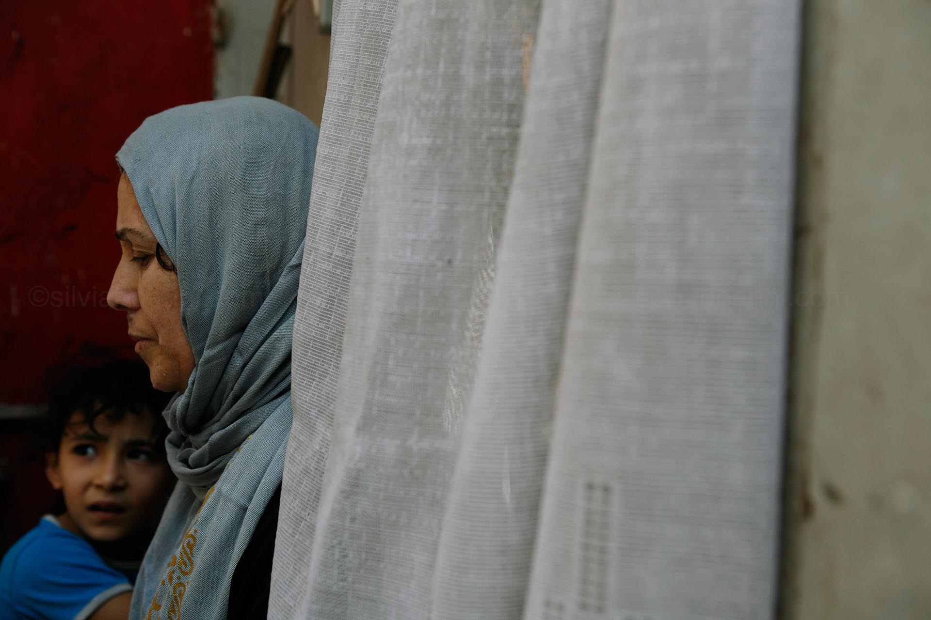 A grandmother sleeps next to her niece in a UNRWA school in Gaza. Gaza, July 2014
