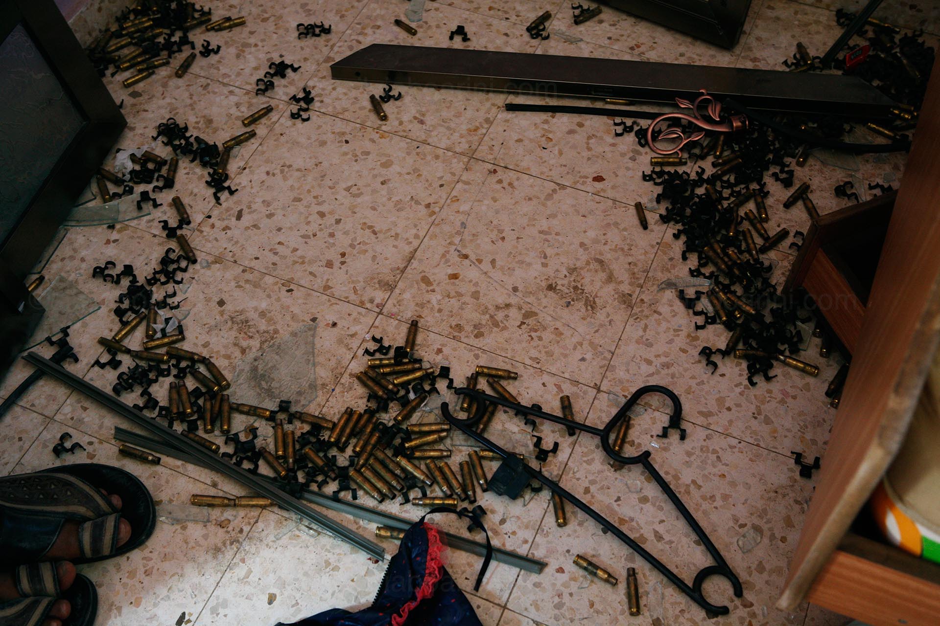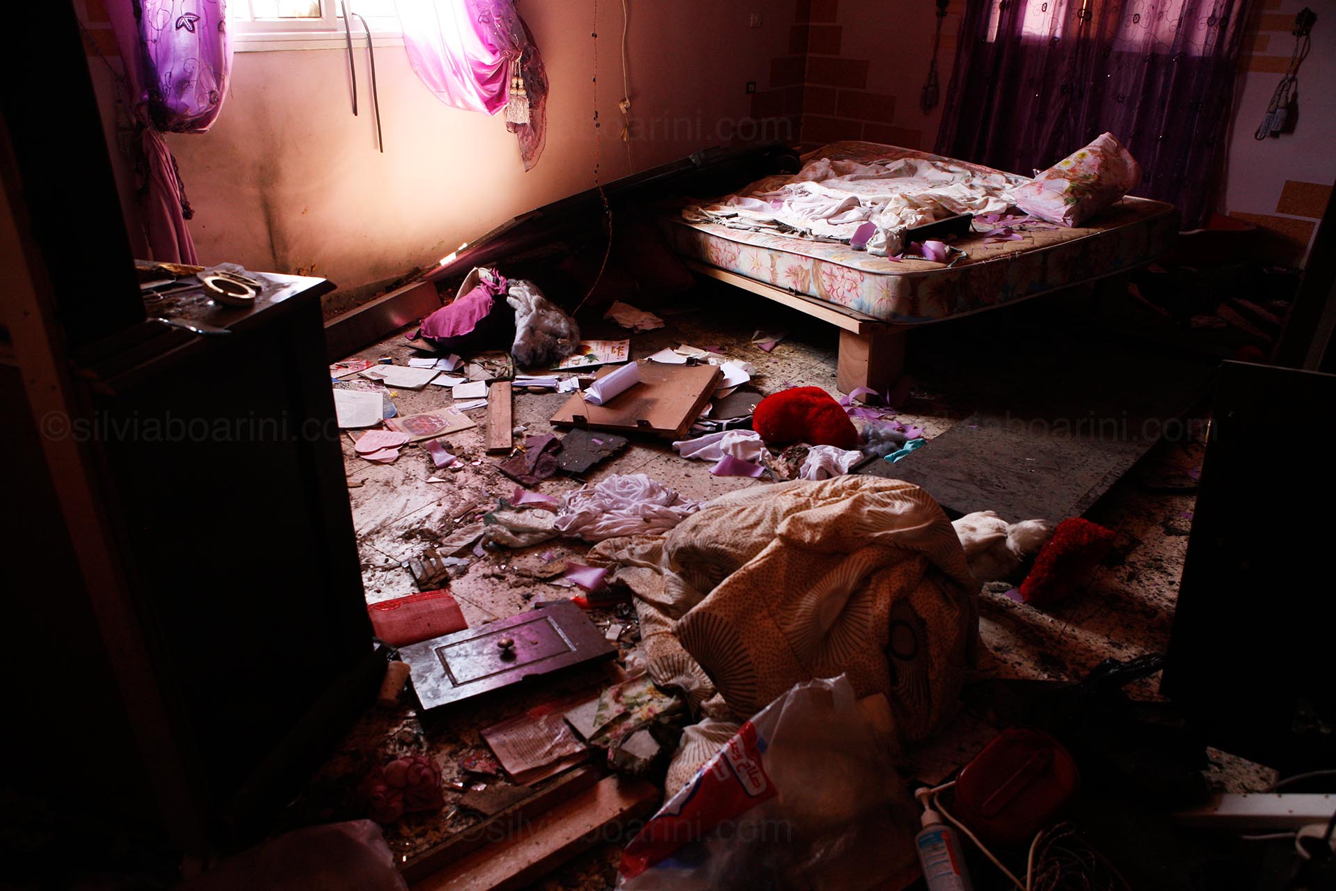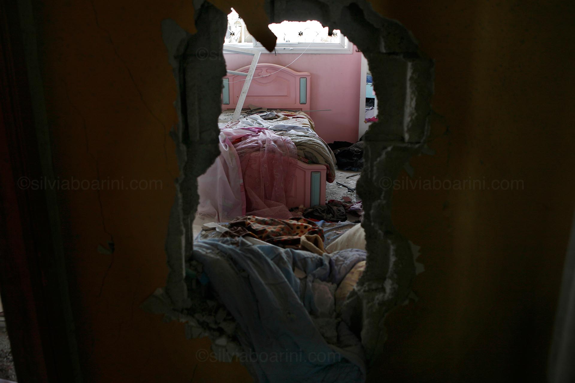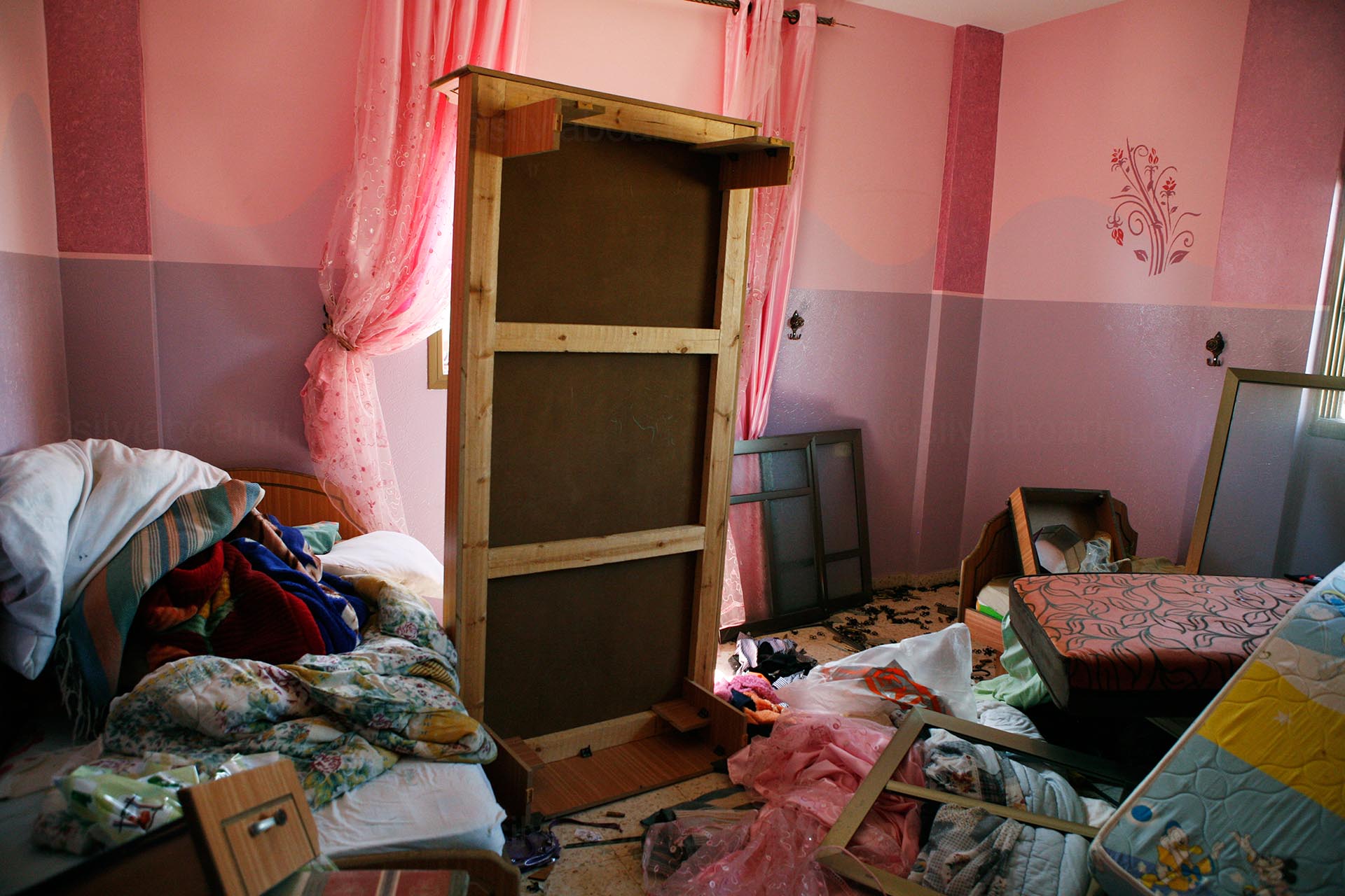 A child's bedroom in one of the homes in Khouza which were taken over by the Israeli army during the ground operation along the eastern border. August 2014