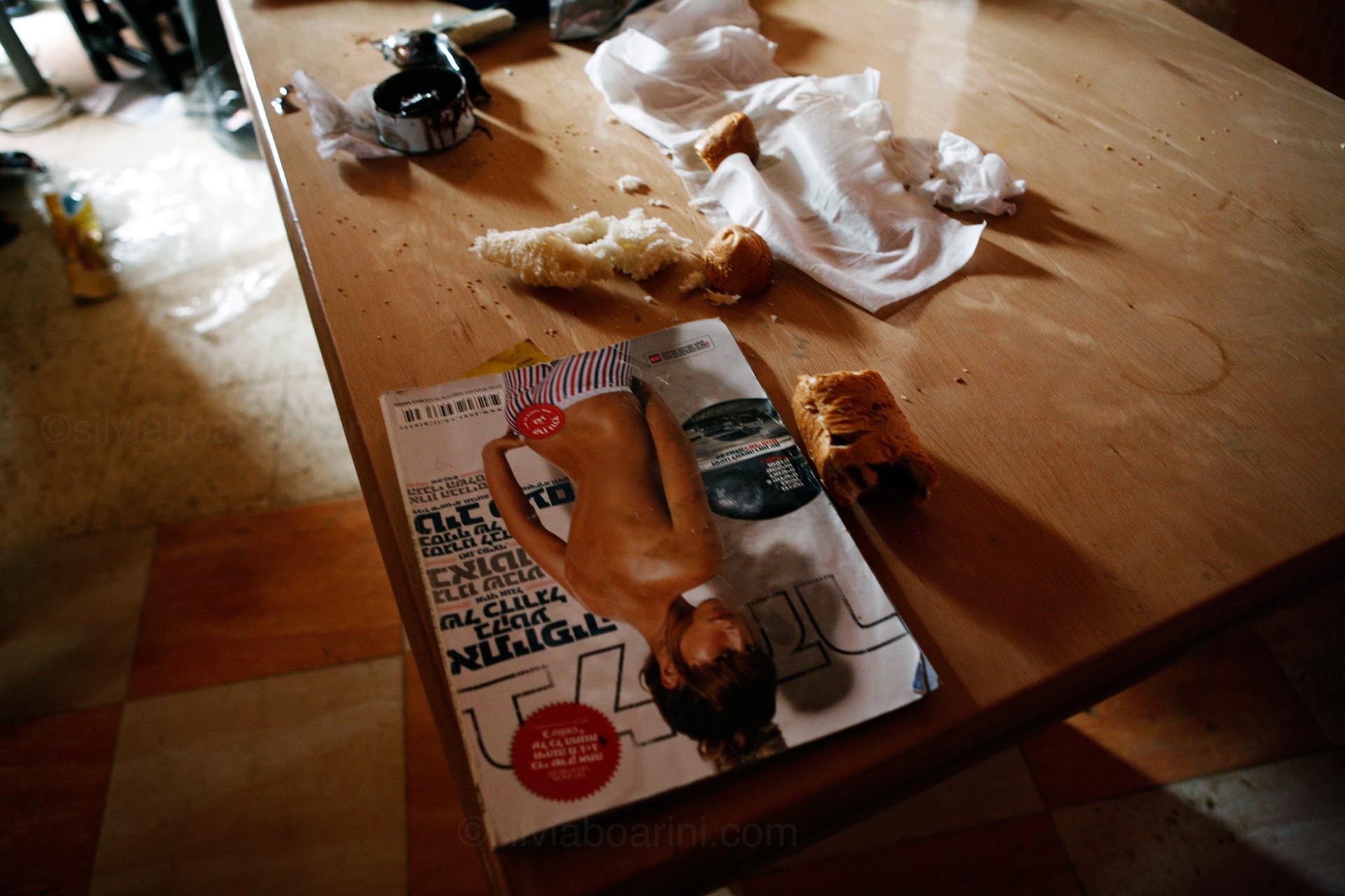 A Hebrew magazine in one of the homes in Khouza which were taken over by the Israeli army during the ground operation along the eastern border. August 2014
