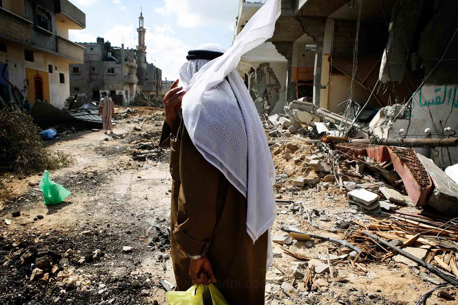 Bedouins from Umm Al Nasser return to their destroyed homes towards the end of the war. Umm Al Nasser, August 2014