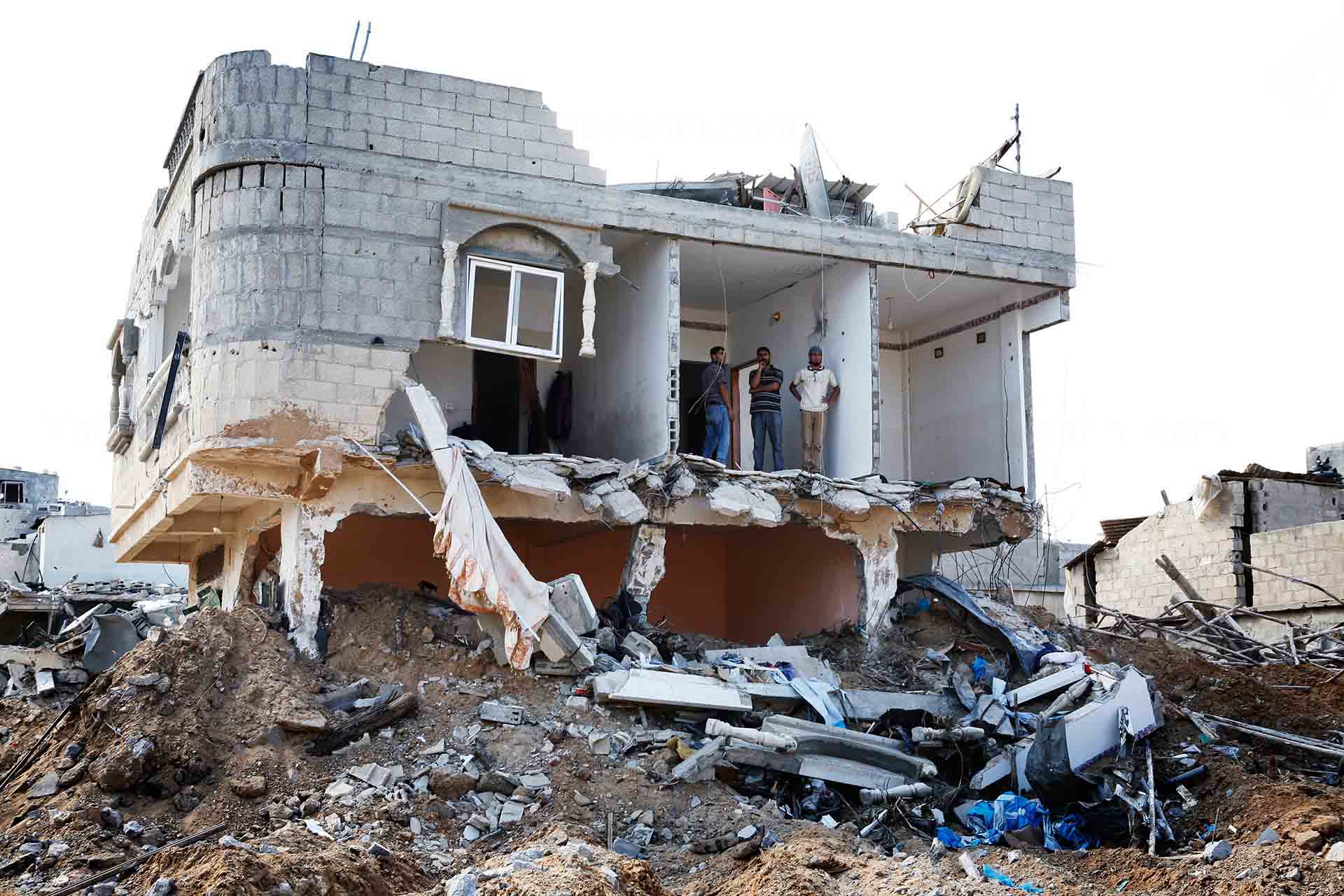 On a day of ceasefire a family surveys the damage to their home in the hard hit neighbourhood of Shujayea. Gaza, July 2014